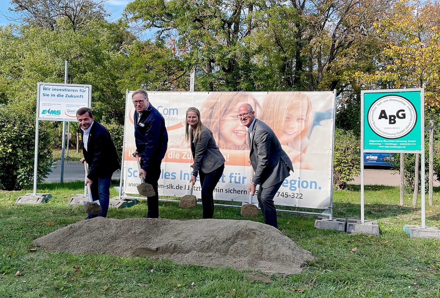 Barby. Gemeinsam mit der ersten Stellvertreterin von Einheitsgemeinde-Bürgermeister Torsten Reinharz, Claudia Blumtritt, vollzogen die Geschäftsführer Jens Brenner (EMS Erdgas Mittelsachsen GmbH), Friedrich Hülsenbeck (GlasCom Gmbh) und Guido Nienhaus (MDCC Magdeburg City-Com GmbH) am Mittwoch den symbolischen ersten Spatenstich für ein weiteres gemeinsames Erschließungsprojekt. Nach Groß Rosenburg, Pömmelte, Glinde und Wespen wollen die drei Partnerunternehmen mit ihrem Glasfaser-Express nun auch in der Kernstadt der Einheitsgemeinde Stadt Barby Station machen. „Der erste Bauabschnitt führt uns von der Gnadauer Straße über Teile der Bahnhofstraße und des Wilhelmsweges zum Colphuser Damm, die Otto-Beckmann-Straße, den westlichen Bereich vom Magdeburger Tor, die August-Bebel-Straße, den Gribehner Weg bis in die sogenannte Spittelbreite“, erklärt EMS-Chef Jens Brenner. Darüber hinaus wird auch die Friedrichstraße erschlossen – hier in Synergie parallel mit der laufenden Straßensanierung. Insgesamt investiert die EMS in die Errichtung des rund 7,9 Kilometer langen Leerrohrnetzes rund 630.000 Euro. „Das tun wir auf eigenes Risiko auch in der Wahrnehmung unserer Verantwortung als regionaler Versorger“, so Brenner weiter. Bei den Arbeiten zum Tief- und Rohrbau sowie zur Kabelverlegung vertraut die EMS mit der Firma ABG aus Hecklingen auf einen langjährigen kompetenten Dienstleister. Die Bauarbeiten – einschließlich Errichtung der Glasfaser-Hausanschlüsse – werden sich voraussichtlich bis zum August 2023 erstrecken. Ab dann werden die ersten Kunden von den leistungsstarken Bandbreiten von 200 Mbit/s und mehr profitieren können. EMS, MDCC und VolksFaser setzen bei ihren Kooperationsprojekten von Anbeginn auf die zukunftsfähige FTTH-Technologie (Fiber To The Home), bei der hochmoderne Glasfaserleitungen von der Straße bis in die Häuser verlegt werden. „Die klassische Kupfer-Doppelader hat endgültig ausgedient“, weiß VolksFaser-Geschäftsführer Friedrich Hülsenbeck. Dass in Barby die Sehnsucht nach schnellen Internetverbindungen groß ist, unterstreicht die gute Resonanz einer Vorabbefragung im Sommer. „Viele Anwohner in den genannten Bereichen zeigten sich von den VolksFaser-Produkten und dem günstigen Hausanschlusspreis von 100 Euro – ausschließlich während der Bauphase – überzeugt. Wir hoffen, dass in den nächsten Wochen noch weitere Interessenten hinzukommen“, sagte EMS-Geschäftsführer Jens Brenner.